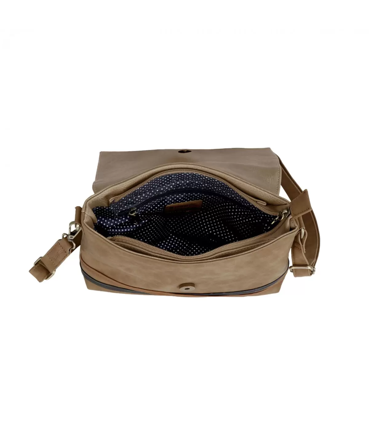 کیف دوشی زنانه گابل اسپانیا مدل Calypsoدارای یک محفظه با بسته شدن زیپ و فلپ می باشد.جیب پشت با زیپ بسته می شود.بند دوشی بلند قابل تنظیم و ضد سرقت (قلاب کارابین).ساخته شده از مواد بدون پی وی سی.کیف دوشی با چرم مصنوعی قهوه ای روشن بسیار سبک و کاربردی است،همچنین بسیار زیبا و مناسب برای همه زمان ها، دارای طراحی مدرن و کیفیت عالی.